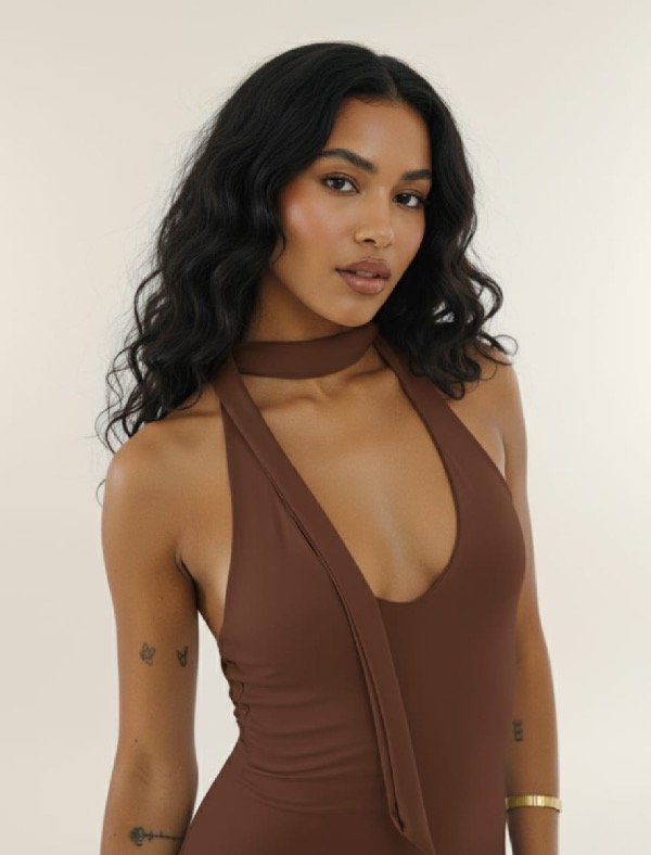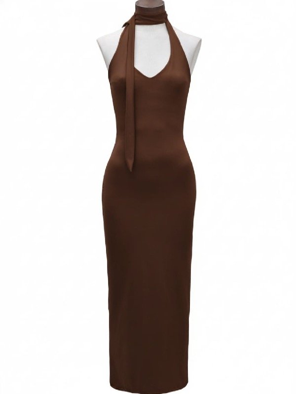 Vestido modal Soft largo entallado con detalle de choker , talle unico